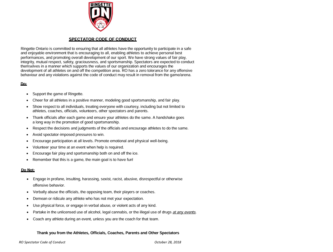 Spectator Code of Conduct